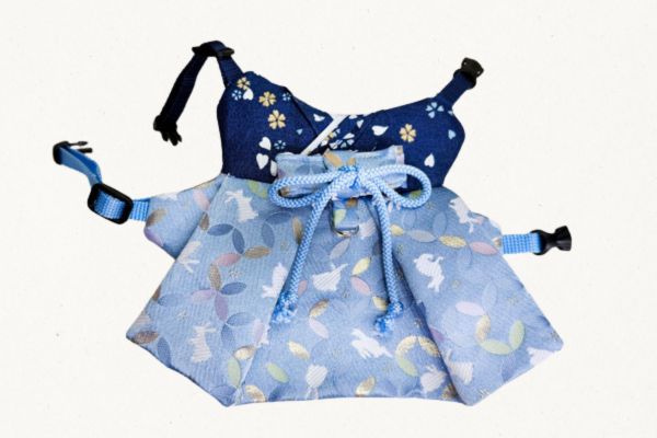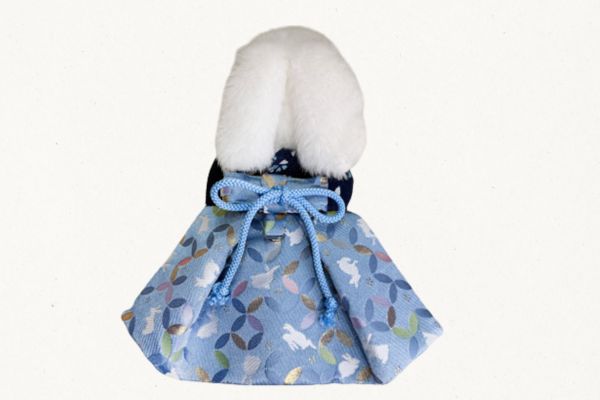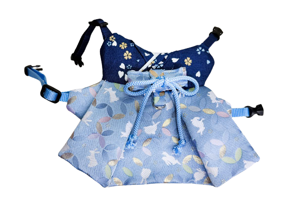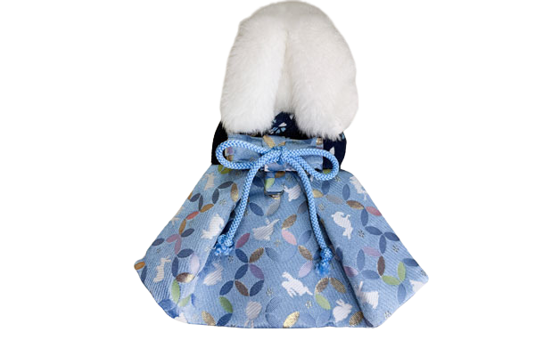 着物は紺色、袴は水色のうさぎ柄